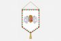 Kétoldalas, fényes szaténselyemből készített zászlócska, alján rojt díszítéssel.
