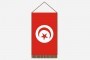 Kétoldalas, fényes szaténselyemből készített zászlócska, alján rojt díszítéssel.